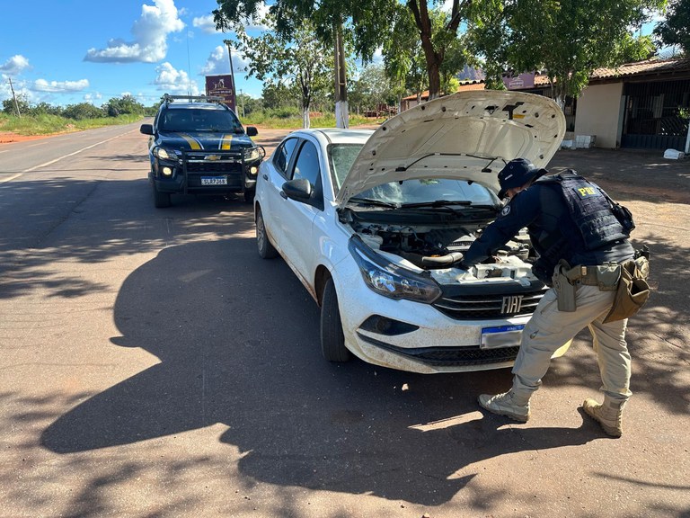 Na abordagem, ele apresentou um Certificado de Registro e Licenciamento Veículos como o documento de licenciamento. Na verificação notaram que o carro não estava no nome do condutor. Após consultas no sistema, contataram que se tratava de um veículo com placa diferente, que havia sido furtado em 18 de maio de 2018, em Goiás.