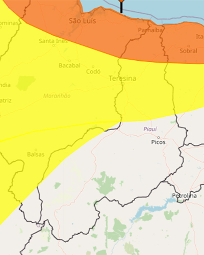 O Instituto Nacional de Meteorologia (Inmet) emitiu alerta amarelo e laranja para chuvas intensas 108 municípios do Piauí neste sábado (27) e no domingo (28), até 10h quando deve ser emitido um novo boletim.