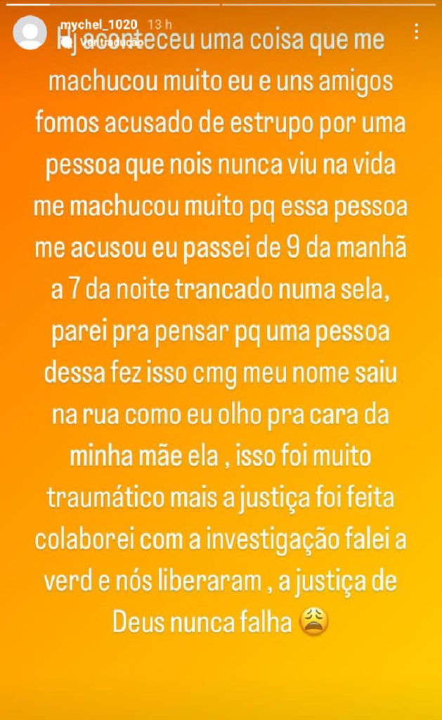 Um dos envolvidos e apontado como suspeito no crime de estupro de vulnerável, usou a rede social para negar que tenha participado do ato. O jovem menciona que foi “traumático” ter passado horas preso e que não conhecia as vítimas.
