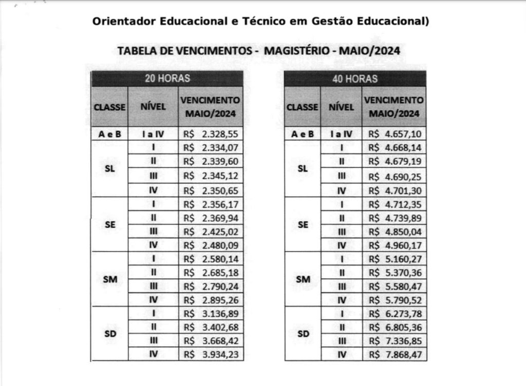 O reajuste é baseado na lei nº 8.316, de 07 de março de 2024, e entrou em vigor a partir desse 1º de maio de 2024. A lei também estabelece que os vencimentos dos profissionais do magistério público da educação básica do Piauí, ocupantes de cargos efetivos, serão pagos nos valores constantes.