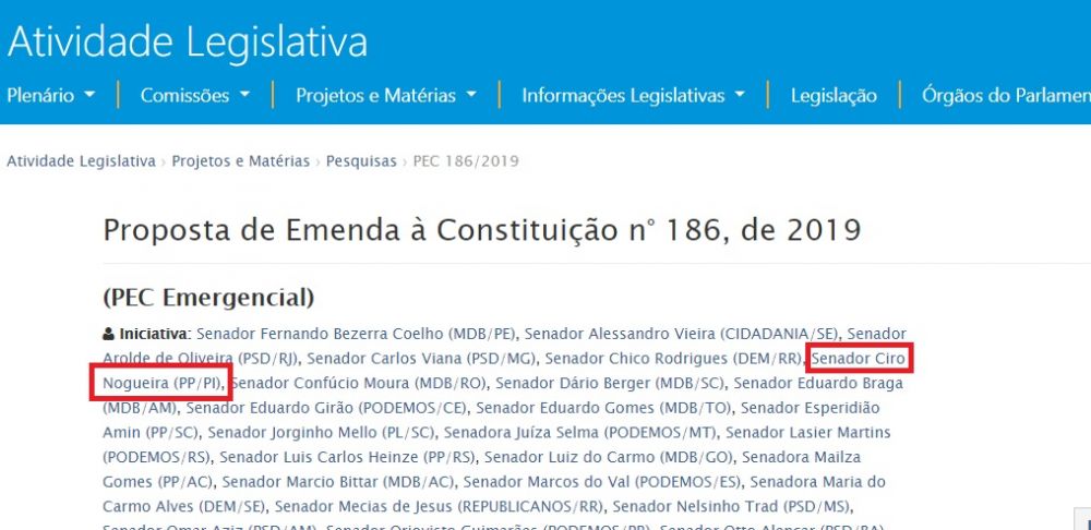 O senador Ciro Nogueira (Progressistas), votou no Senado, pela aprovação da PEC 186/2019, que entre outras medidas, congela por 15 anos, o reajuste de qualquer aumento no salário de servidores públicos.