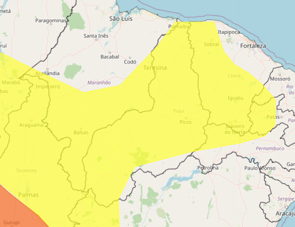 Inmet publicou ainda a previsão do tempo para Teresina, que também está sob alerta.
