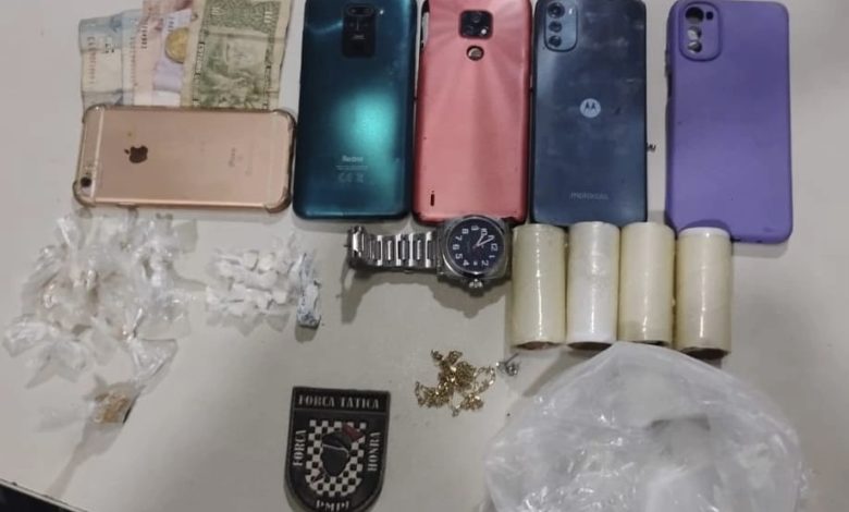 Um deles, identificado como João Henrique, foi alcançado pelos agentes. Com ele, os policiais encontraram 28 porções de crack e cocaína, além de vários aparelhos celulares sem procedência fiscal.