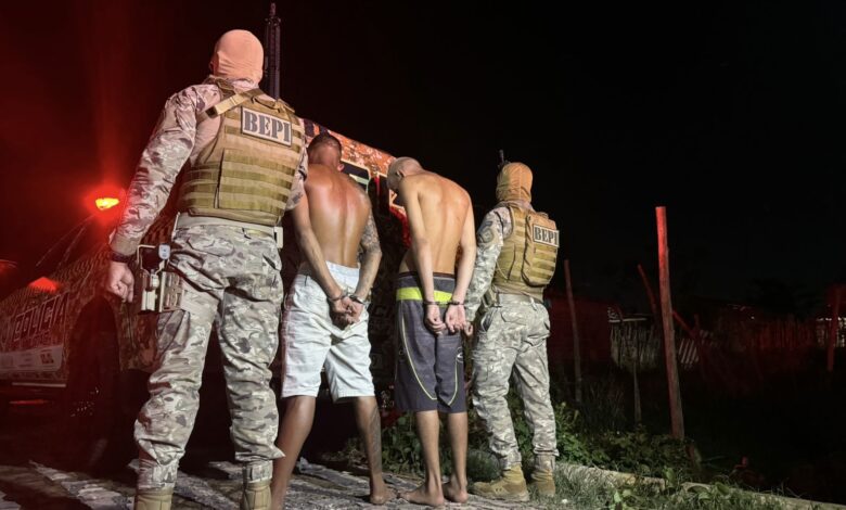 “Foram presos os dois indivíduos envolvidos nesse duplo homicídio e um deles é o companheiro da mulher. O outro elemento é o vulgo Pé na Porta. Ele reside em Timon, faz parte da facção Bonde dos 40 e é o chamado Torre, o que vem pra disciplinar e cobrar nas regiões comandadas por eles”, explicou o policial do Batalhão Especial de Policiamento do Interior à TV Antena 10.