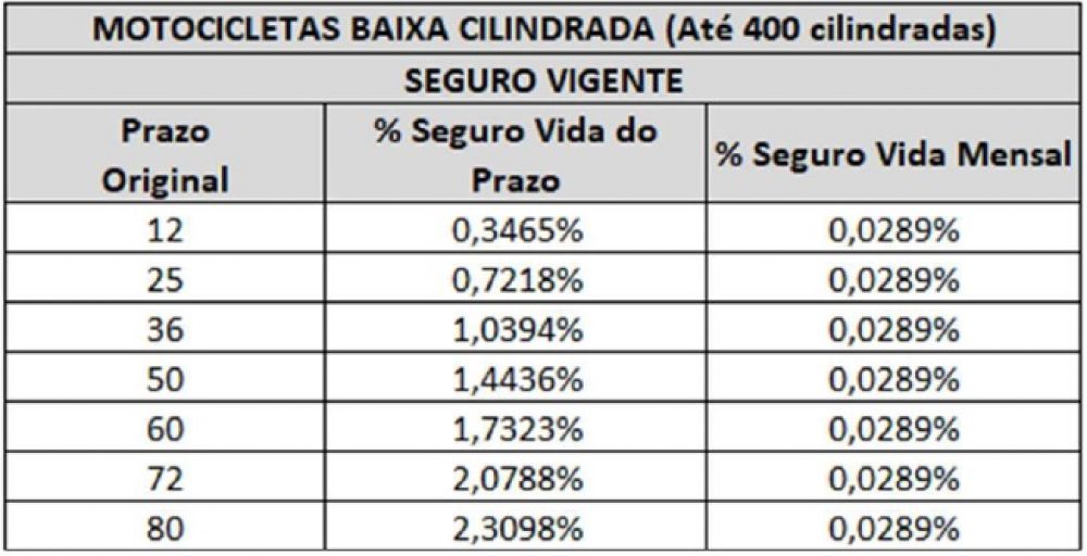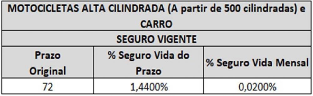 Todos os casos seguirão o percentual mensal estabelecido nas tabelas abaixo, que incidirá sobre o valor do bem base atual e vigente do contrato firmado pelo consumidor multiplicado pela quantidade de parcelas efetivamente pagas: