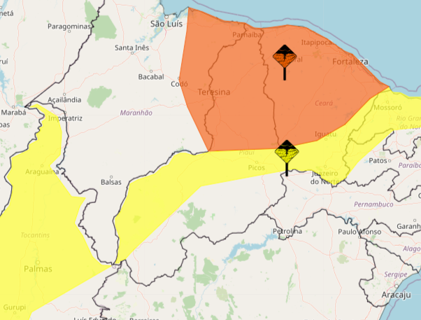 De acordo com o mapa do Inmet, Teresina está sob alerta laranja.
