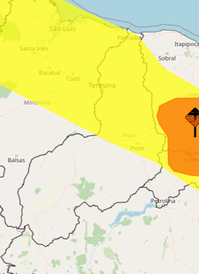 O Instituto Nacional de Meteorologia (Inmet) emitiu, nesta quarta-feira (21), um alerta amarelo de chuvas intensas para Teresina e outras 140 cidades do Piauí. O aviso é válido até às 10h de quinta-feira (22).
