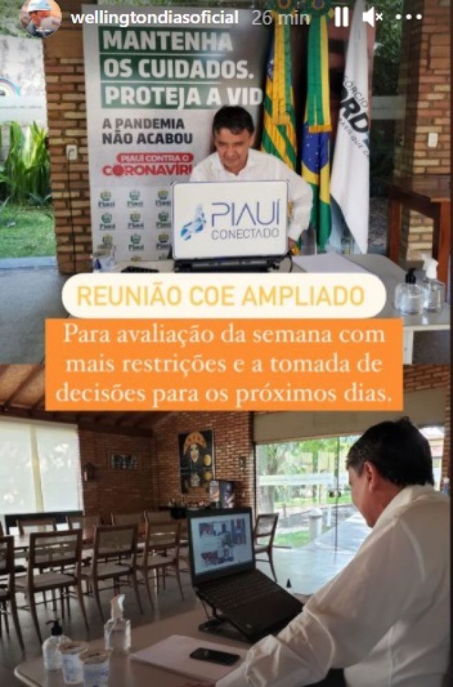 O governador do Piauí, Wellington Dias (PT), convocou uma reunião do Comitê de Operações Emergenciais (COE) Ampliado, na tarde deste sábado (03), para avaliar a semana que passou e decidir sobre os próximos passos.