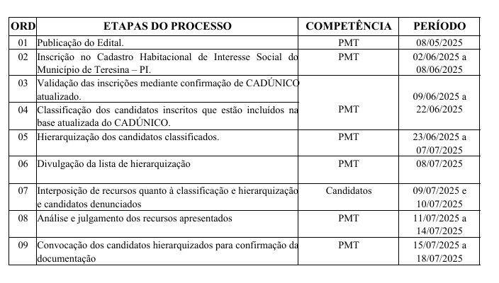 As inscrições para o Programa “Minha Casa, Minha Vida” em Teresina começam nesta segunda-feira (2) e seguem até o dia 8 de junho, exclusivamente pela internet, o link de inscrição será disponibilizado no site oficial da Secretaria Municipal de Planejamento e Coordenação de Teresina (SEMPLAM).