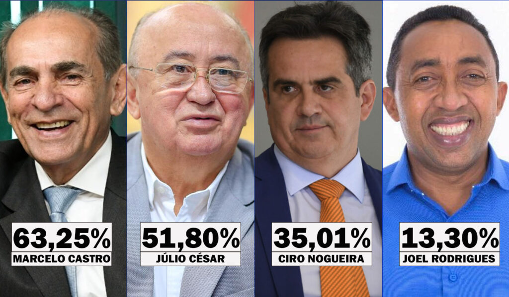 No segundo cenário, os números variaram um pouco. Marcelo Castro manteve a liderança, com 63,25% das intenções de voto, seguido por Júlio César, com 51,80%. Ciro Nogueira ficou em terceiro, com 35,01%, e Joel Rodrigues, em quarto, com 13,30%.