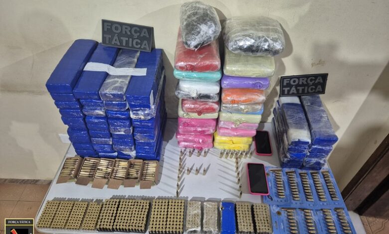 Segundo informações da polícia, a droga estava armazenada em malas ligadas a duas passageiras. Com a dupla também foram encontrados arsenal de armas, 1.088 munições de diversos calibres, incluindo fuzil 5.56, pistola .45 e 9 mm (uso restrito), além de calibres .38 e .380.
