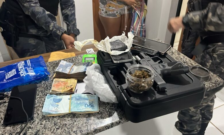 “Foi apreendido com ela crack, dinheiro trocado e um aparelho de celular roubado. Neto Camelo representa a liderança do Bonde dos 40 na zona Sul da capital, se encontra foragido, é um dos presos mais procurados pela Segurança Pública do Estado do Piauí. Nós conseguimos identificar um possível endereço dele, chegando lá estava o filho dele em poder de uma arma de fogo e também de uma quantidade alta de drogas e dinheiro”, explicou o delegado Samuel Silveira, coordenador do Denarc.