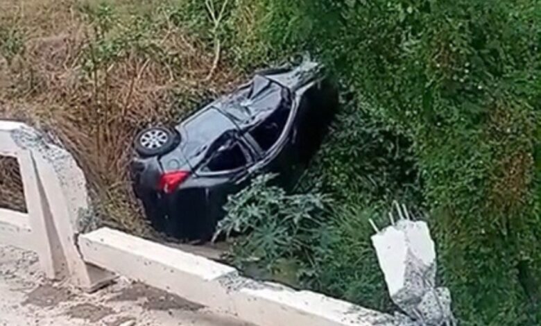 Mulher fica presa às ferragens após carro cair de ponte na BR-316