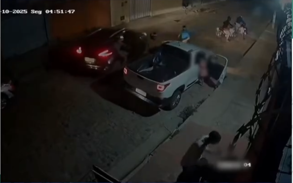 Um assalto registrado na madrugada de segunda-feira (10) no bairro Eduardo Costa, na zona Sul de Teresina, deixou uma família em estado de choque. As imagens de câmeras de segurança flagraram o momento em que um grupo criminoso, composto por pelo menos oito suspeitos, cerca o veículo das vítimas e anuncia o assalto.