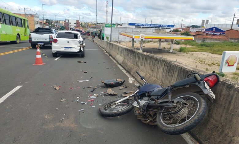 Motociclista bate em traseira de carro e cai do viaduto da Tabuleta em Teresina