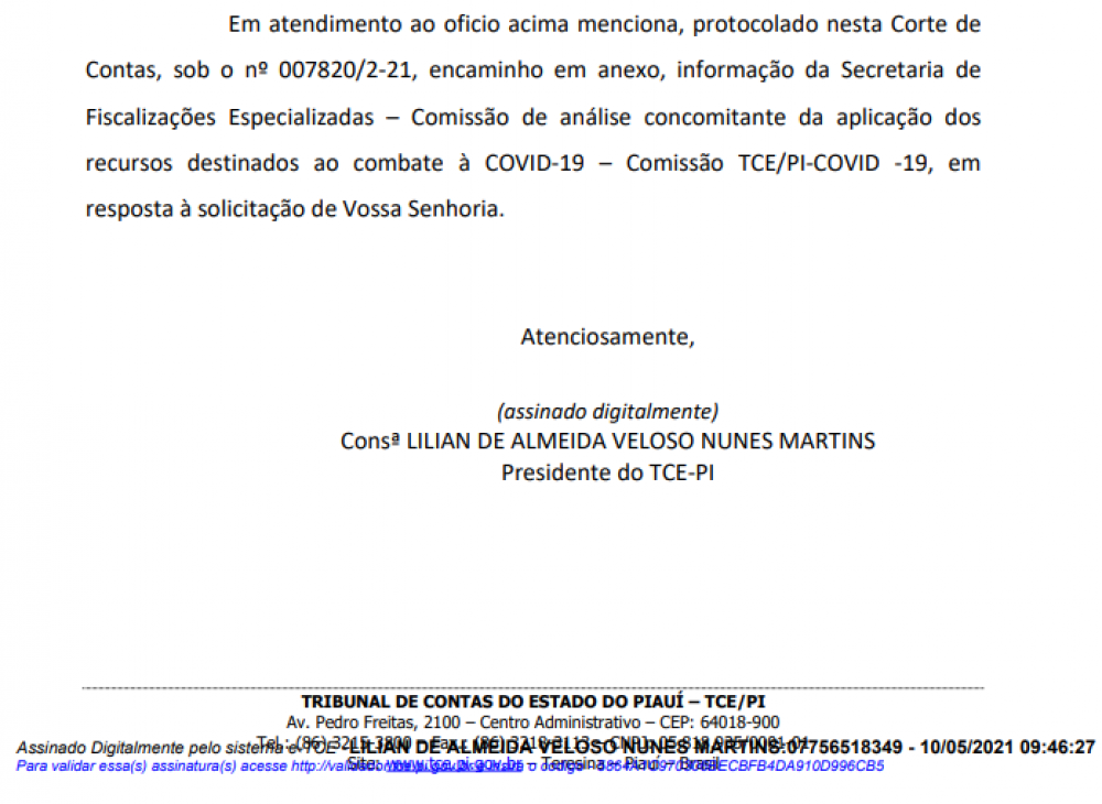Os casos envolvem auditorias do Tribunal de Contas na “Contratação de empresa para instalação do Hospital de Campanha Anexo ao Hospital de Urgências de Teresina – FMS Teresina” (17.783.902,80) e a “Aquisição de testes rápidos para detecção da SARS-COV-2 – FMS Teresina” (R$ 33.868.056,00).