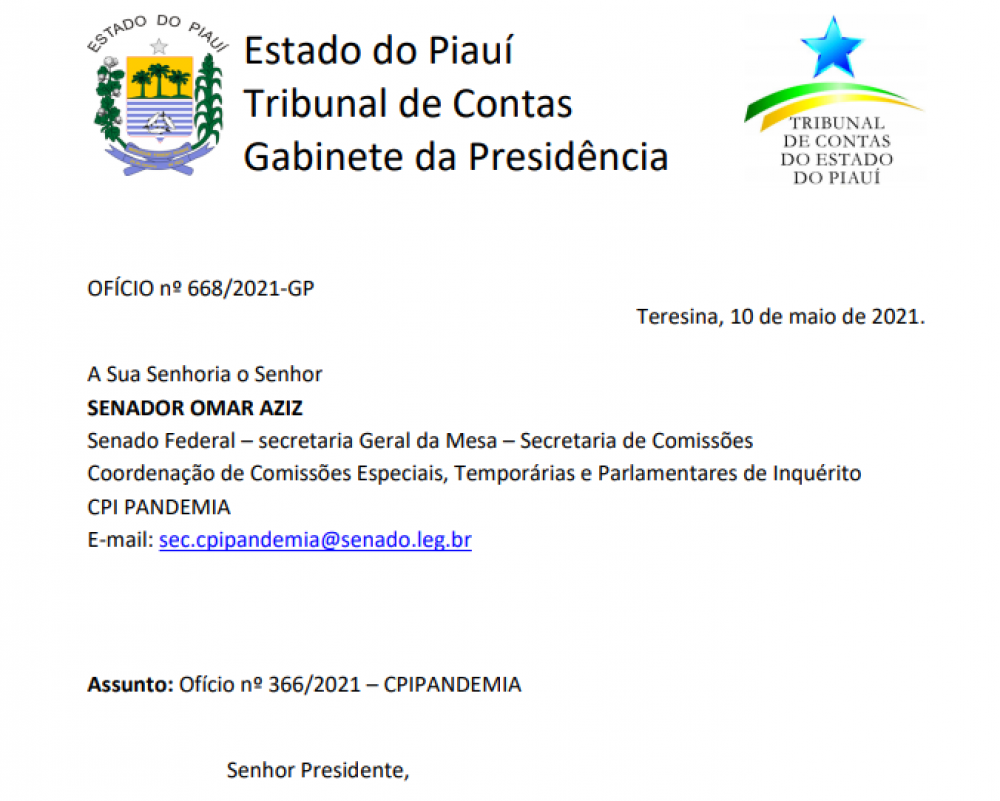 Já constam dos arquivos da Comissão Parlamentar de Inquérito da Pandemia algumas informações de investigações existentes no estado do Piauí que recaem sobre recursos destinados pelo governo federal para o combate à pandemia da Covid-19, entre elas auditorias contra aliados políticos de Ciro Nogueira, a exemplo da gestão última da Prefeitura de Teresina – que continha membros pertencentes ou orbitando grupo político próximo ao senador da República.
