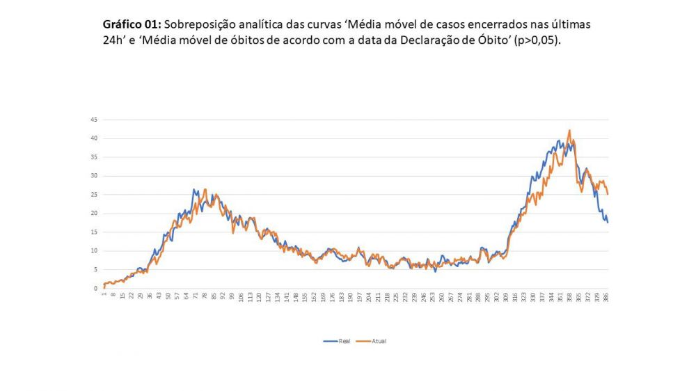 Não só o Piauí, mas também outros estados passaram a adotar a análise gráfica de óbitos de acordo com a Declaração de Óbito – Ocorrência – dia em quem o óbito de fato aconteceu- em seus Painéis Eletrônicos. “No Piauí, esta decisão é sustentada por análise estatística realizada pelo CIEVS PI (Gráfico 01) que constatou não haver diferença significativa que venha a impedir a implementação do gráfico ‘Média Móvel de Óbitos de acordo com a data da Declaração de Óbito’. Assim, há recomendação técnica epidemiológica para este ajuste no Painel Epidemiológico do Piauí”, explica a Coordenadora do CIEVS e de Epidemiologia da SESAPI, Amélia Costa.