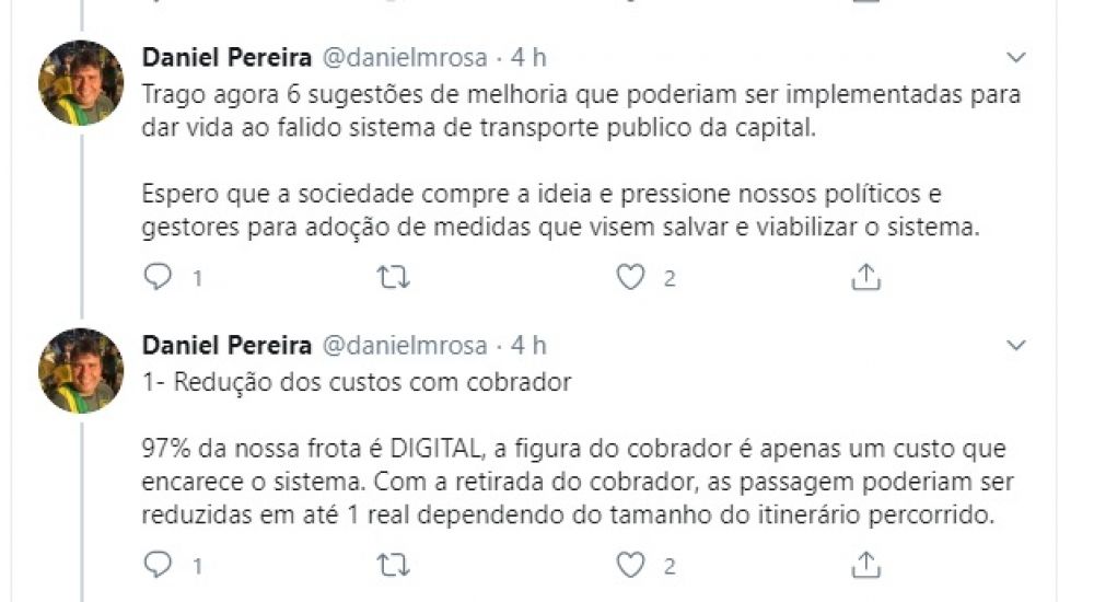 Em um post no Twitter, Daniel Pereira publicou que fez parte durante sete anos do Conselho Municipal de Trânsito, mas que o órgão nunca discutiu os problemas do sistema.