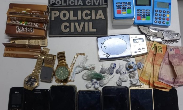 Foram 10 (dez) autuações em flagrante, 7 (sete) armas apreendidas, 3 (três) motos com registros de roubo/furto recuperadas, diversos celulares apreendidos com registros de roubo, drogas (maconha e cocaína), dinheiro, balanças de precisão, material para embalagem das drogas e pássaros silvestres.