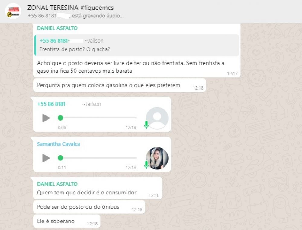 Segundo ele, a medida barateia os custos e os preços. “Acho que o posto deveria ser livre de ter ou não frentista. Sem frentista a gasolina fica 50 centavos mais barata. Pergunta pra quem coloca gasolina o que eles preferem”, disse no grupo Zonal Teresina.