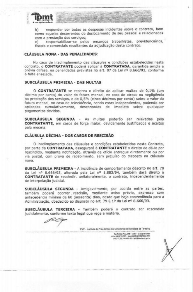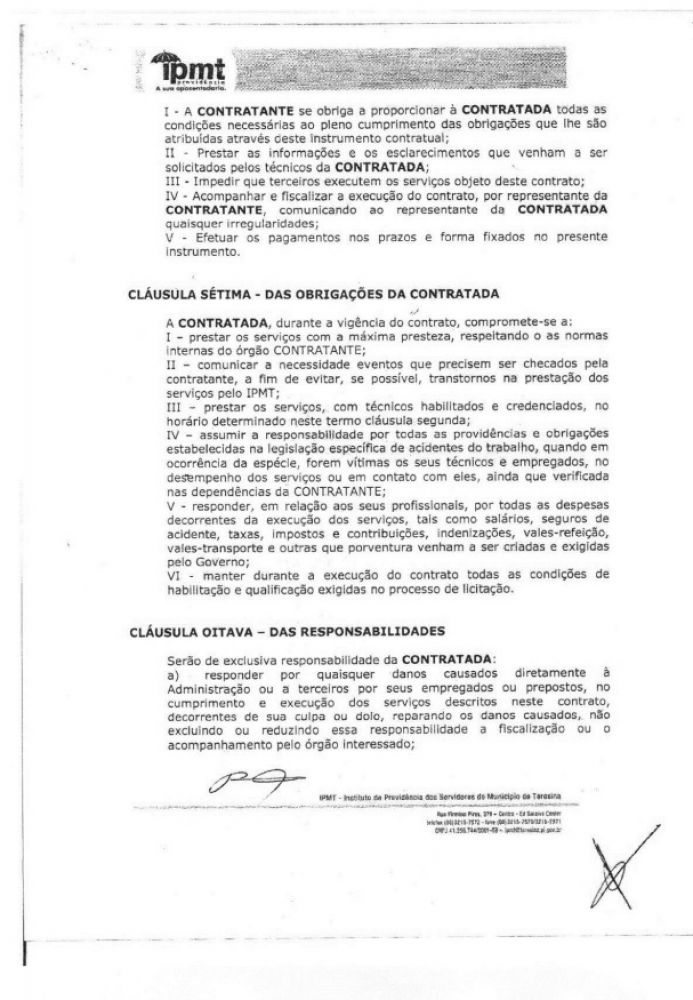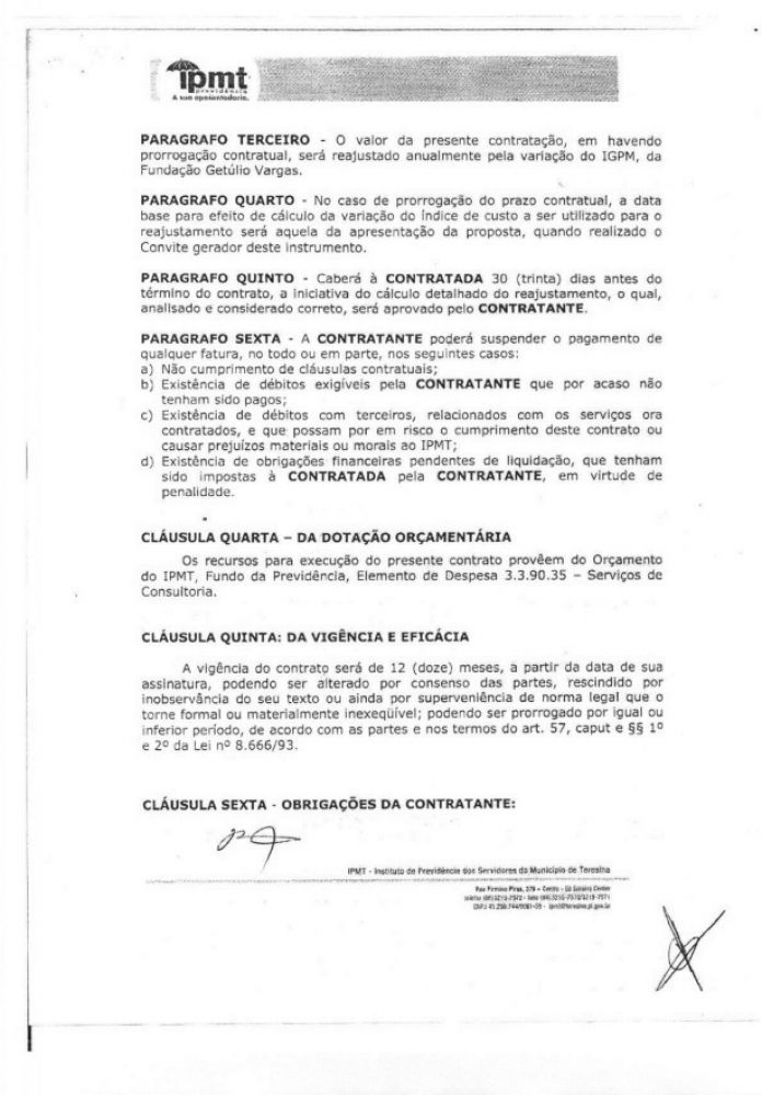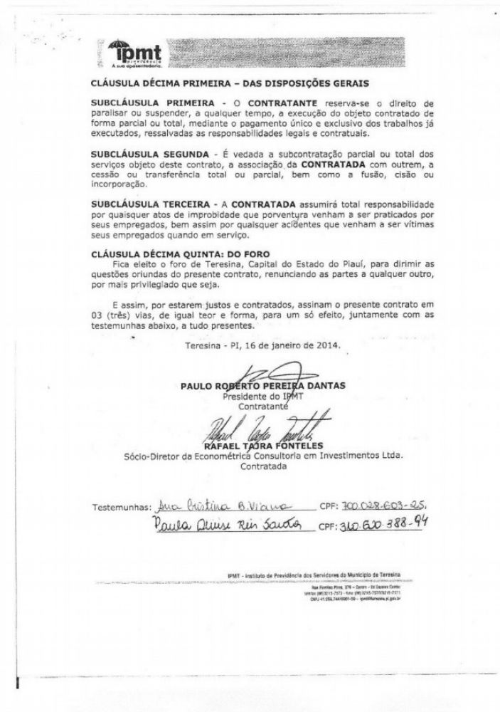 Adiante, o contrato assinado em 2014 com a assinatura do próprio Rafael Fonteles.