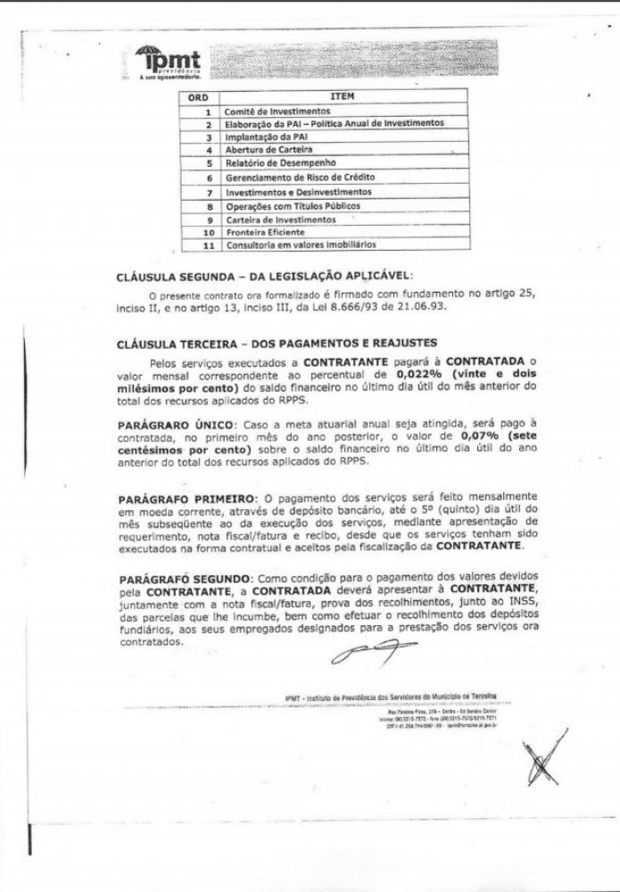 A Econométrica presta consultoria sobre os valores que o órgão dos aposentados da Prefeitura de Teresina mantém aplicado em fundos de investimentos desde 2014. A empresa fatura um percentual sobre o volume das aplicações.
