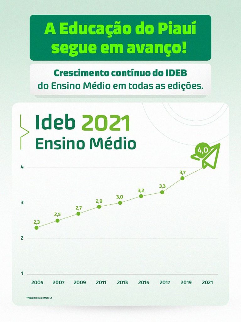 “O Piauí precisa comemorar esse resultado, porque, mesmo enfrentando dois anos atípicos, com aulas remotas, conseguiu avançar tanto no Ensino Fundamental quanto no Ensino Médio. Aproveito para parabenizar todos os profissionais da educação que, durante a pandemia, foram heróis e se reinventaram para que os estudantes da Rede continuassem aprendendo”, destacou o secretário de Estado da Educação, Ellen Gera.