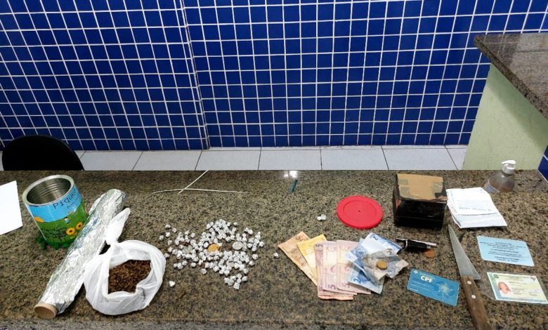 No local, foram recepcionados por Maria, que permitiu a entrada e revista dos militares. Durante a busca, foi encontrado um saco com, aproximadamente, 20g de maconha destrinchada e 129 pedras de crack em uma lata de leite.