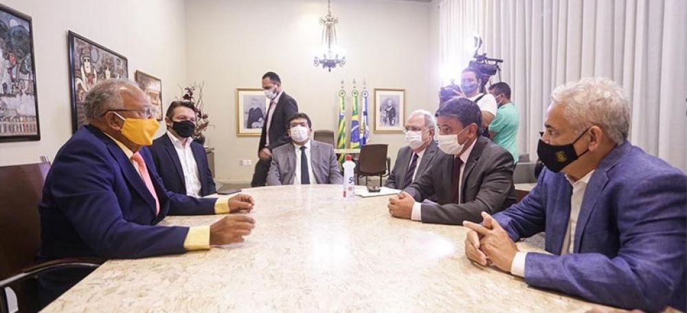 O governador Wellington Dias (PT) sentou ao lado do vice-prefeito Robert Rios (PSB), na primeira reunião oficial com o prefeito de Teresina, Dr. Pessoa (MDB).