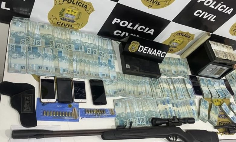 “Durante as diligências foram apreendidas nos locais um arma de fogo, diversas munições e R$ 171.000,00 (cento e setenta e um mil reais). A ação contou com o apoio dos canis da PMPI, Guarda Municipal e Polícia Civil do Maranhão”, informou o Denarc em nota.