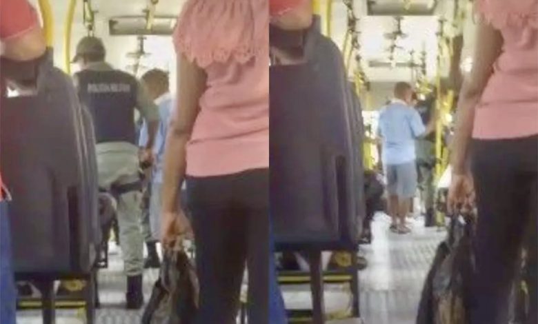 Imagens feitas por populares flagraram o momento em que PMs entram no ônibus e retiram o suspeito do veículo.