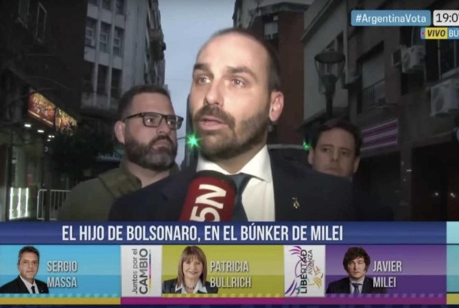 Em Buenos Aires para expressar, presencialmente, apoio ao candidato da ultradireita Javier Milei no primeiro turno das eleições da Argentina, no domingo (22/10), o deputado federal Eduardo Bolsonaro (PL-SP) passou por um constrangimento público com um canal de tevê argentino.