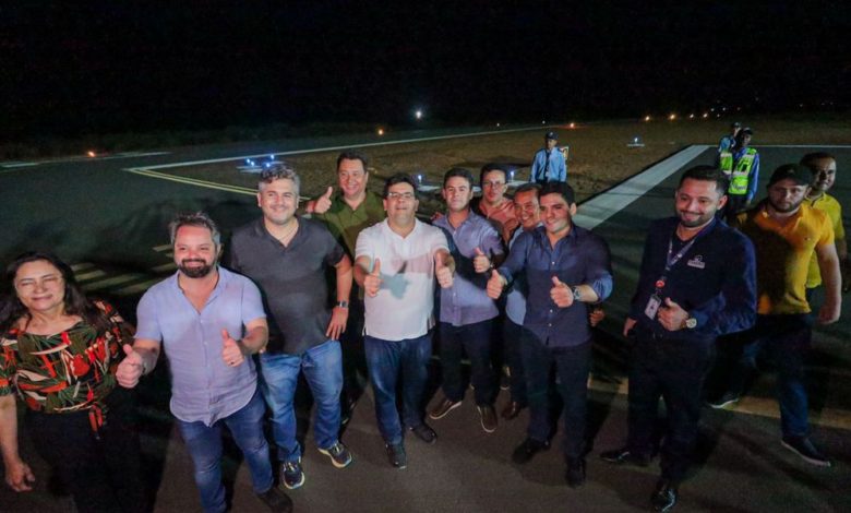 O voo foi possível após o governador entregar o balizamento noturno, permitindo pousos e decolagens após às 18h.