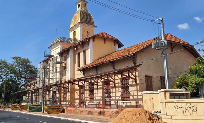 Prédio da antiga estação dos trens está sendo restaurado e deve ser reinaugurado em agosto de 2024.