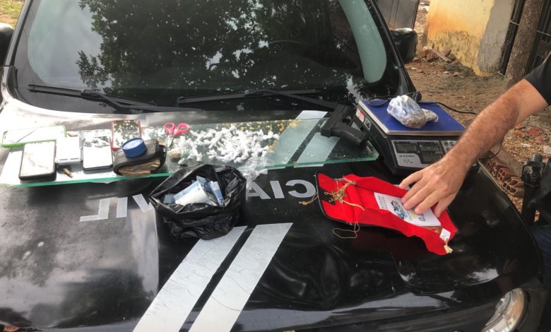 A Polícia Civil do Piauí, através da Delegacia Estadual de Capturas (DECAP), realizou na tarde desta quinta-feira (21), a apreensão de uma grande quantidade de drogas, dinheiro, um simulacro de arma de fogo e entre outros itens característicos do tráfico de drogas. A ação aconteceu em uma residência na Vila Jerusalém, na zona Sul de Teresina.