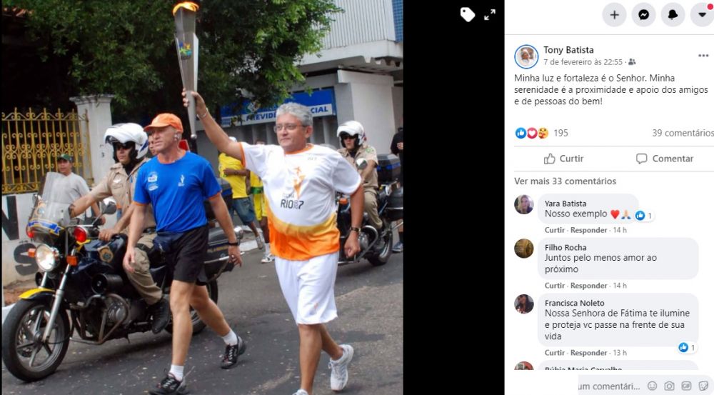 No dia seguinte, o padre respondeu com uma postagem no Facebook, onde carrega uma tocha olímpica e com a seguinte mensagem: “minha luz e fortaleza é o Senhor. Minha serenidade é a proximidade e apoio dos amigos e de pessoas do bem!”.