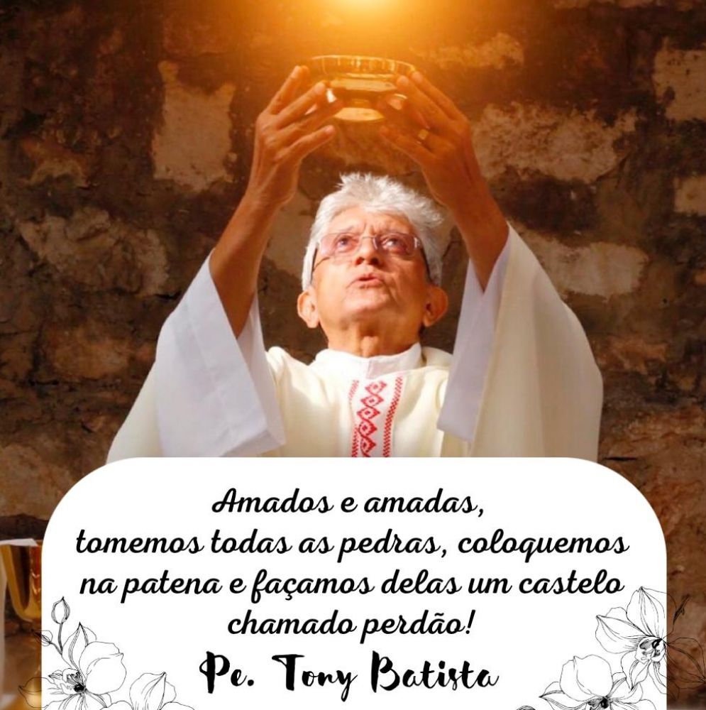 Pouco depois, tornou a postar no Facebook. “Amados e amadas, tomemos todas as pedras, colquemos na patena e façamos delas um castelo chamado perdão! Pe. Tony Batista”.