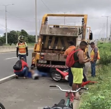 Um motociclista ficou ferido durante um grave acidente envolvendo um caminhão poliguindaste, que transporta caçamba de entulho, na manhã desta terça-feira (05), por volta das 8h, na BR-316, em Teresina.