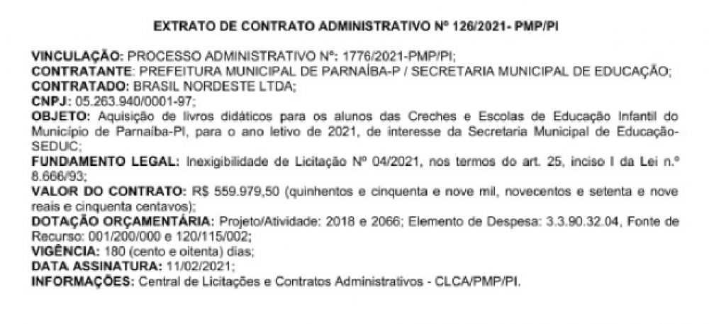 O contrato foi assinado e publicado no dia 11 de fevereiro de 2021.