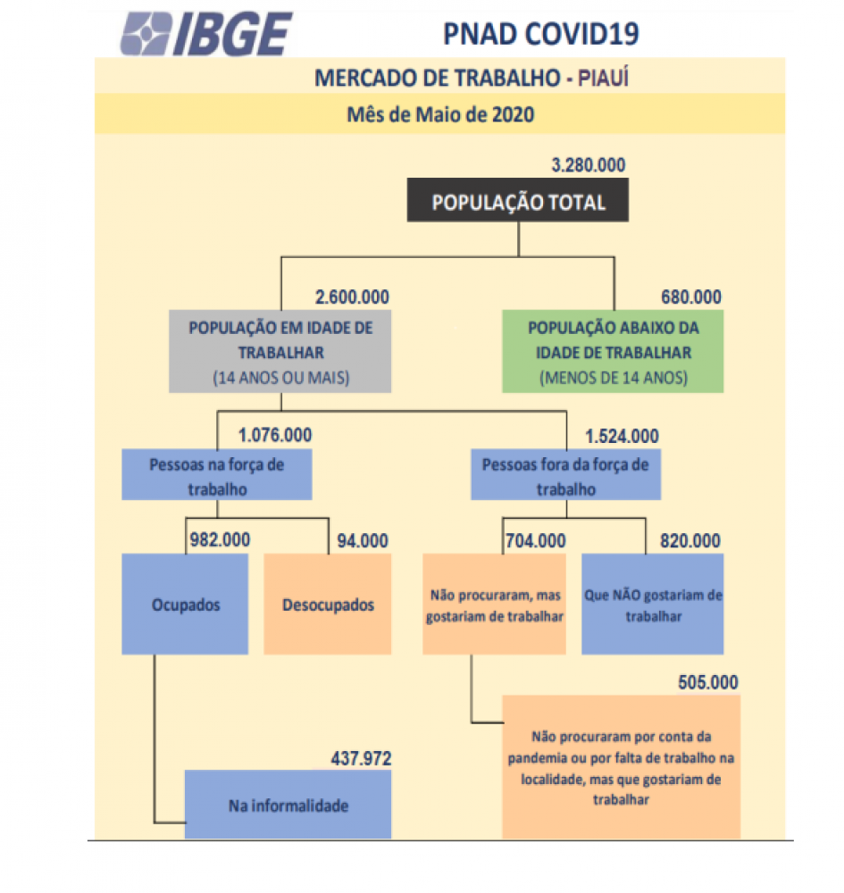 Cerca de 505 mil pessoas não conseguiram buscar emprego no Piauí no mês de maio por causa da pandemia ou da falta de oportunidade de trabalho na localidade em que moravam. Nesse mesmo período cerca de 94 mil pessoas estavam desempregadas e buscaram uma ocupação.
