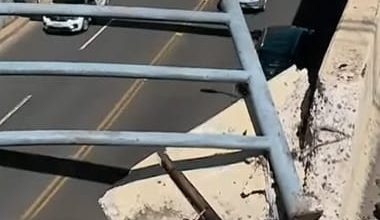 Um bloco de concreto do viaduto localizado no cruzamento das avenidas Higino Cunha e Barão de Castelo Branco, na zona…