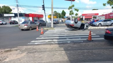 Uma idosa perdeu o controle da direção e capotou o carro ao colidir com outro veículo na Avenida Nossa Senhora…