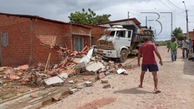 Caçamba sem motorista desce morro e colide em residência no Piauí