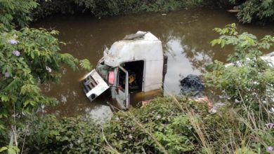Uma carreta que levava motocicletas caiu dentro de um rio, às margens da BR 343, em Campo Maior, após se…