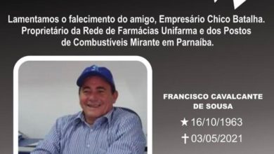 O empresário Francisco Cavalcante de Souza, de 57 anos, morreu na manhã desta segunda-feira (03/05) por complicações causadas por Covid-19. …