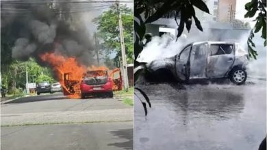 Um veículo modelo Renault Sandero pegou fogo no final da manhã desta terça-feira (09) na Rua Agripino Maranhão, no bairro…