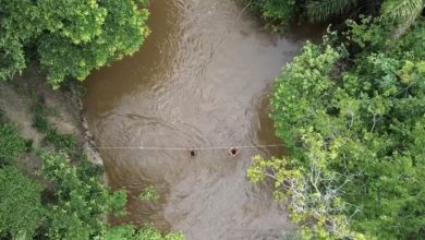 Crianças e adolescentes da comunidade Oitis, Zona Rural de Milton Brandão, Norte do Piauí, estão atravessando o Rio Corrente "como animais",…