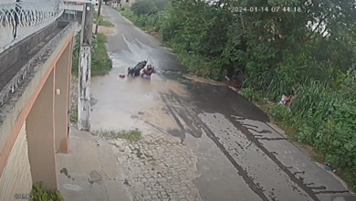 A água da chuva escondeu um grande buraco na rua Castro Alves, em Floriano, e um motociclista, sua esposa e…