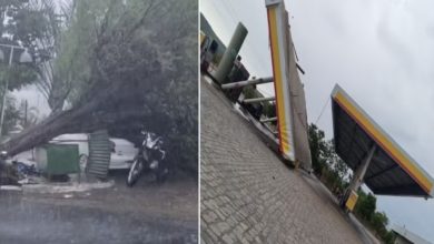 Ventos fortes derrubam teto de posto de combustível em Picos